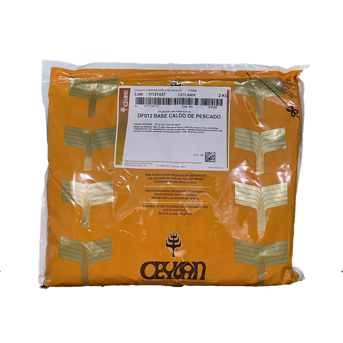Sal, maltodextrina, extracto de pescado, vegetales deshidratados (cebolla, ajo), extracto de levadura, glutamato monosódico E-621 (<=7.34%), aceite de girasol, aroma*.